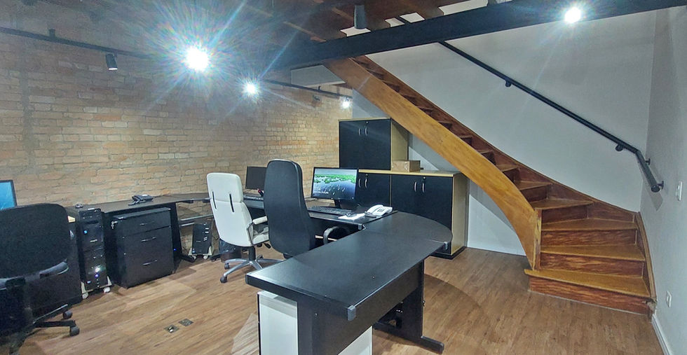 No piso inferior, uma sala de espera/recepção, um grande salão, quintal, área gourmet e 2 lavabos.