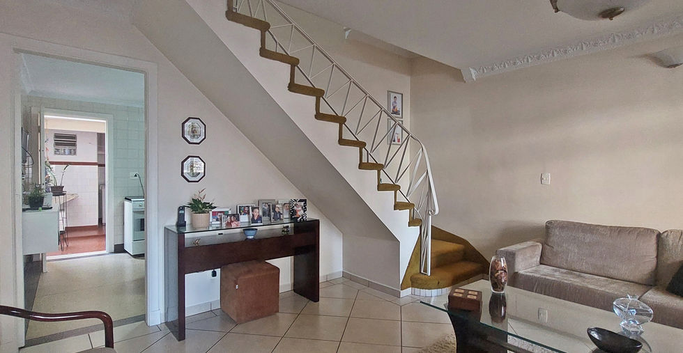 No piso superior, 2 dormitórios, sala de TV, que pode ser adaptada para um 3º dormitório, e 1 banheiro social com box de vidro.